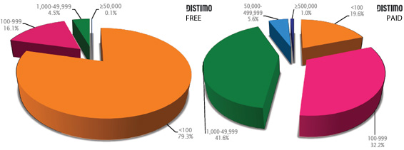 Als we inzoomen op betaalde apps zien we dat bijna 80 procent van de applicaties minder dan 100 keer gedownload is. Ter vergelijking: voor gratis applicaties ligt dit percentage op 24.8 procent. Dit schetst hoe lastig het is voor Android developers om hun applicaties te moneytizen. Mogelijk is dit een belangrijke reden waarom veel developers voor advertenties kiezen in plaats van een applicatie betaald aanbieden. Beste voorbeeld hiervan is toch wel Angry Birds. Voor de iOS versie moet er betaald worden maar binnen Android is het gratis te downloaden. Om nog maar een vergelijking met de App Store te trekken: binnen Android zijn er 5 applicaties die meer dan 250.000 keer gedownload zijn wereldwijd. Betreft iOS zijn er alleen al binnen de VS 10 applicaties die binnen 2 maanden zoveel downloads bereikte.
