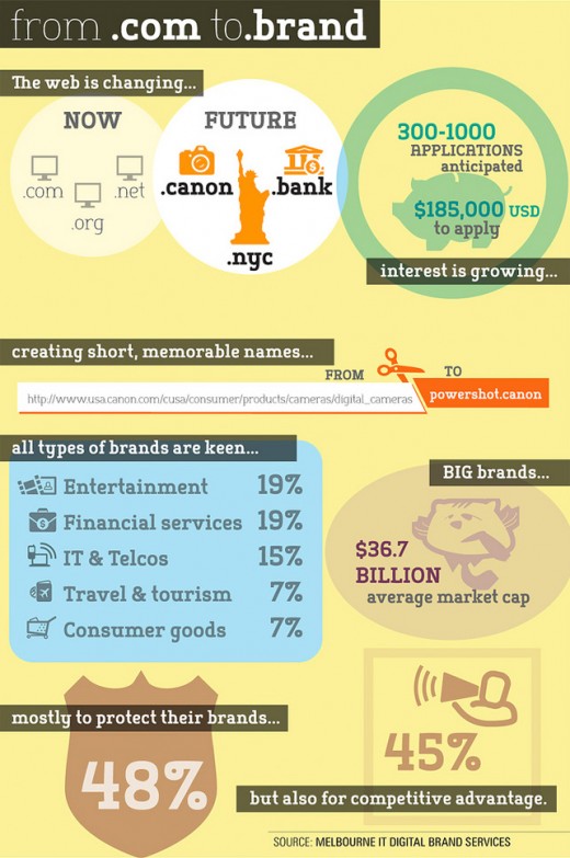 Een infographic CircleID die de shift van .com naar .merknaam weergeeft: