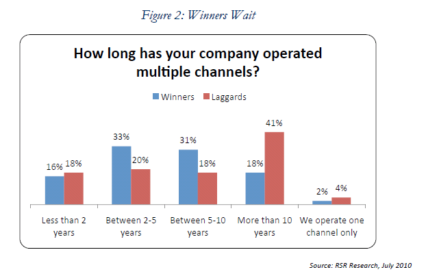 Dit verklaart echter niet waarom de retail winners hier later mee beginnen. Dit kan zowel komen door budgetten als het gebrek aan visie. Het tweede onderzoek (N=83) laat zien dat waar laggard retailers technologie zien als een middel om tactische processen te veranderen, terwijl retail winners eerst bedenken hoe de technologie het bedrijf kan versterken en aanvullen.