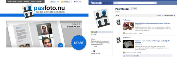 Een tweede voorbeeld is de website pasfoto.nu. Dit is een Nederlandse website met een geheel nieuwe technologie om online pasfoto’s te maken. Pasfoto.nu is actief op Facebook.