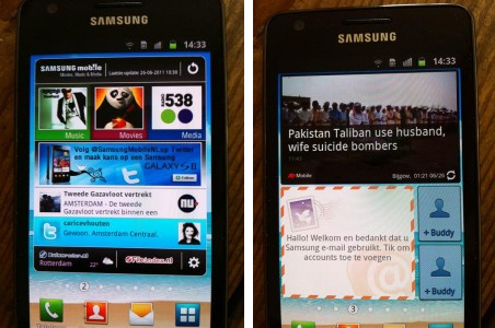 Op de Samsung zijn verschillende Hubs geinstalleerd, zo is er de Social Hub: na een korte registratie kan je hier al je social media in 1 keer benaderen. Hyves, Twitter, Facebook, e-mail maar ook instant messaging wordt ondersteund. De Readers Hub is de boekenplank bekend van de iPhone met boeken, tijdschriften en kranten. Dan zijn er nog de Music Hub en de Game Hub. Helaas kreeg ik bij de Music Hub de melding dat deze Hub niet in dit land ondersteund wordt. Jammer…..