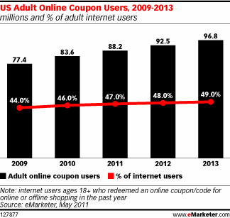 Volgens cijfers van eMarketer zullen dit jaar 88.2 miljoen Amerikaanse inwoners een online coupon gebruiken.
