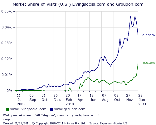 Dan hebben we in Nederland nog Groupdeal, waar de Telegraaf Media Groep in november een groot belang in nam. Helaas heb ik van de Nederlandse markt weinig cijfers kunnen vinden. In dit artikel op Emerce vertelt GroupDeal-oprichter Paul Montagne dat Groupdeal in november 2010 60.000 abonnees had. De maand ervoor telde de nieuwsbrief nog slechts 10.000, dus er is moeilijk de vinger op te leggen hoe dat nu zal zijn.