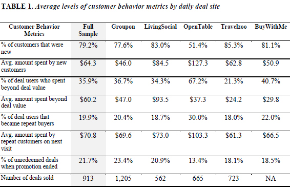 Onderzoek van professor Utpal M. Dholakia van Rice University schetst een heel ander beeld. Met uitzondering van OpenTable, dat zich richt op hoog segment restaurants, vormen nieuwe klanten meer dan 77 procent van de respondenten die een online coupon aanschaften. Gemiddeld werd 20 procent van hen een vaste klant en iedere respondent gaf meer uit dan de waarde van de coupon.