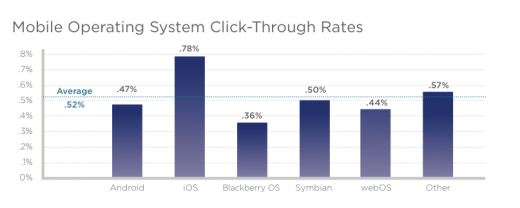 Volgens een onderzoek van advertentiebureau Jumpstart klikken gebruikers van iPhones veel vaker op advertenties dan gebruikers van Android. De cijfers laten zien dat de CTR voor iPhone 1,6 keer zo hoog is als die van Android. De CTR voor mobiele advertenties is gemiddeld 0,52 procent. Voor iPhone geldt een click-through-rate van 0,78 procent, en die voor Android ligt op 0,47 procent. Jumptap zelf geeft als verklaring dat de uniformiteit van het iOS platform zorgt voor een betere user experience wat zorgt voor betere interactie met de advertenties.