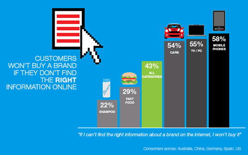 De besproken studie, uitgevoerd door Initiative, een in Nederland bekend media-agentschap uit de Interpublic Group, toont aan dat 43% van de consumenten niet een bepaald merk zal kopen als ze niet de juiste informatie over dat merk online vinden.