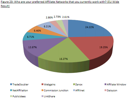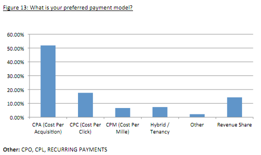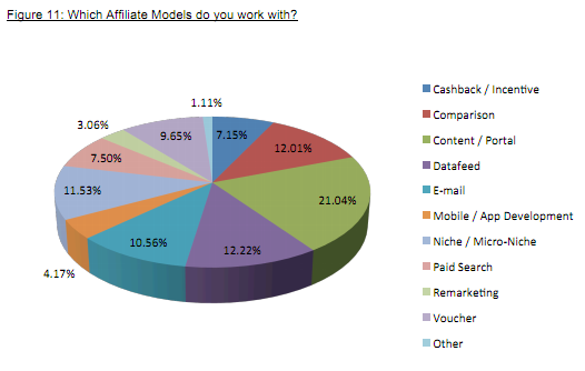 De populairste affiliate modellen zijn content portalen (21%), datafeeds (12%) en vergelijkingen (12%).