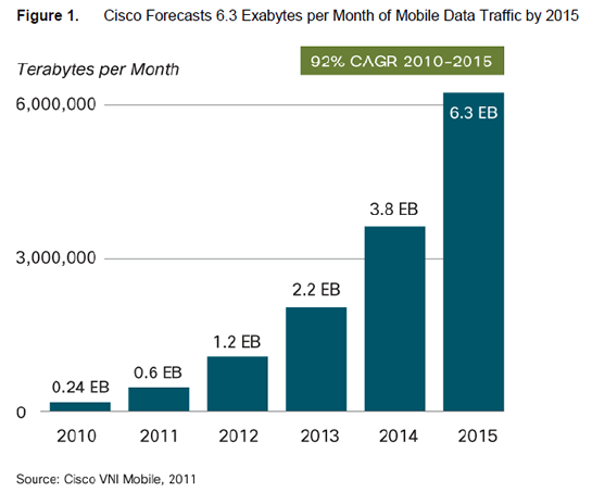 Los van het verdienmodel wat de huidige of toekomstige providers hier aan zullen hangen, is het wel duidelijk dat mobiel internet ‘here to stay’ is. Het zal niet lang meer duren voordat er meer mobiele apparaten het internet bezoeken dan desktop computers. Morgan Stanley voorspelt dat op 2015, Tony Keusgen van Google raamt het op een jaar eerder. Nu is het echter nog niet zover. Op dit moment is mobiel internet qua data al vele malen groter dan de data die onze telefoongesprekken kosten (zie cijfers van Ericsson). Van de Amerikaanse smartphone bezitters zegt 28% dat voor hen mobiele internet de belangrijkste verbinding met internet is (Pew Internet, n=2.277). Cisco voorspelt (PDF) dat tegen 2015 er meer dan 788 miljoen mobile-only internet gebruikers zullen zijn. Daarnaast voorspelt het dat het wereldwijde mobiele dataverkeer in 2015 toegenomen zal zijn met een factor 26.