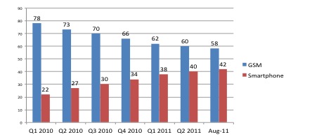 GfK heeft al aangegeven dat er dit jaar voor het eerst meer smartphones dan gewone mobiele telefoons zullen worden verkocht. Gedurende de eerste zes maanden van dit jaar gingen er in totaal 1.482.000 smartphones over de toonbank. Vorig jaar werden er 821.000 toestellen werden verkocht, dat is een stijging van meer dan 80 procent. Daarmee lijkt de Nederlandse markt volwassen te zijn geworden.