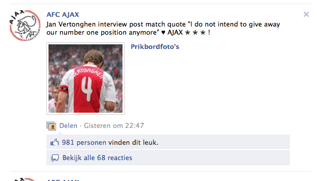 @peter naar aanleiding van je opmerking ben ik opnieuw in de data gedoken, ben benieuwd wat je van deze blog vindt. Excuses voor de verwarring de koppeling met een unofficiele Ajax fanpage en die doen voorkomen als een officiele is misleidend. Ik wil hierbij benadrukken tot dit echt ‘per ongeluk’ is gebeurd en er geen intentie achter zat. Door het breder te trekken zien we een ander beeld zoals dat nu in de nieuwe post staat.