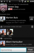 Bijna net alsof je in de Facebook-app zit. Vanuit de bijgeleverde app ‘Muziek en video’s van vrienden’ zie je direct een overzicht van YouTube-video’s die door je vrienden zijn gedeeld. Van daaruit kun je ook de video liken en erop reageren en hem natuurlijk bekijken (daarvoor word je wel doorgestuurd naar de YouTube-app. Verder wordt je Facebook-agenda gesychroniseerd (inclusief verjaardagen van vrienden) en zie je bij je contactpersonen hun laatste Facebook-statusupdate, mits je natuurlijk je contactpersonen synchroniseert.
