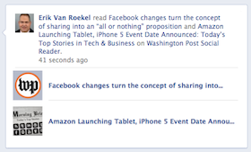 Een week geleden introduceerde Facebook een aantal nieuwe features tijdens het F8 developerscongres. Veranderingen die naar verwachting van een aantal experts de nodige impact zal hebben. Diverse gebruikers gaven aan moeite te hebben met de wijzigingen wegens aantasting van hun privacy. Maar dat is eigenlijk nog niets. Een van de initiatieven die maximaal gebruik maakt van deze nieuwe features is de Washington Post Social Reader. Tijd om daar eens wat dieper in te duiken en wat dit betekent voor jou en je vrienden.