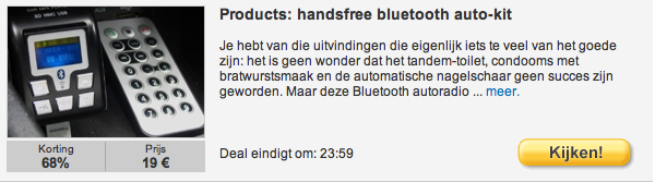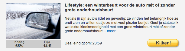 Ik ben overigens ook lid van groupdeal en daily deals. Die hebben (weliswaar minder) maar wel dezelfde soort aanbiedingen zonder die super irritante teksten! Misschien maar overstappen? 🙂