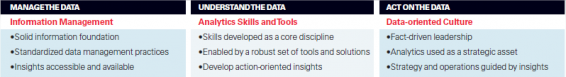 Er zijn drie competenties nodig om het gebruik van analytics zo efficiënt en effectief mogelijk te gebruiken: