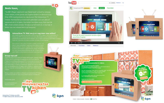 Om online aandacht te trekken voor de introductie van iTV Online van KPN , wat het mogelijk maakt om TV te kijken op je iPad, werden er in augustus dit jaar bouwpakketten gestuurd aan diverse online media. Via Twitter en andere sociale media doken ineens allerlei zelf-gepimpte kartonnen TV’s op. In deze blog geven KPN en Energize een kijkje in de keuken van deze campagne. Wat bereik je met een dergelijke campagne, wat ging er goed (en wat ook niet)?