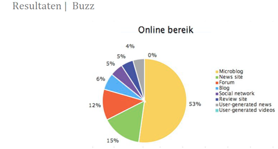 In totaal zorgde de actie voor 1.541 postings, waarvan 53% kwam van microblogs (voornamelijk Twitter). De fora en nieuwssites (vooral nu.nl) hadden de grootste impact in bereik, gevolgd door de microblogs. Het potentieel bereik van de actie kwam daarmee uit op 1,2 miljoen en er is 194.000 euro aan mediawaarde gegenereerd.