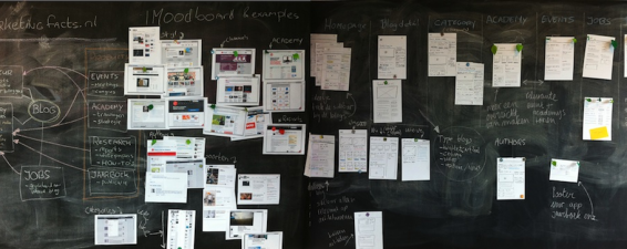 Mangrove werkt aan de hand van de SCRUM methode (waar we nog een blog over zullen schrijven). Bij deze projectmethode wordt op voorhand geen functioneel en technisch ontwerp meer gemaakt. Maar natuurlijk moet er wel een duidelijk beeld worden gevormd van de ideeën die wij bij een nieuwe site hebben. Daarom zijn we gestart met een brainstorm in de “topless room” van Mangrove. Dat is een ruimte waar laptops niet zijn toegestaan en waar je de krijtborden die aan de muur hangen gebruikt.