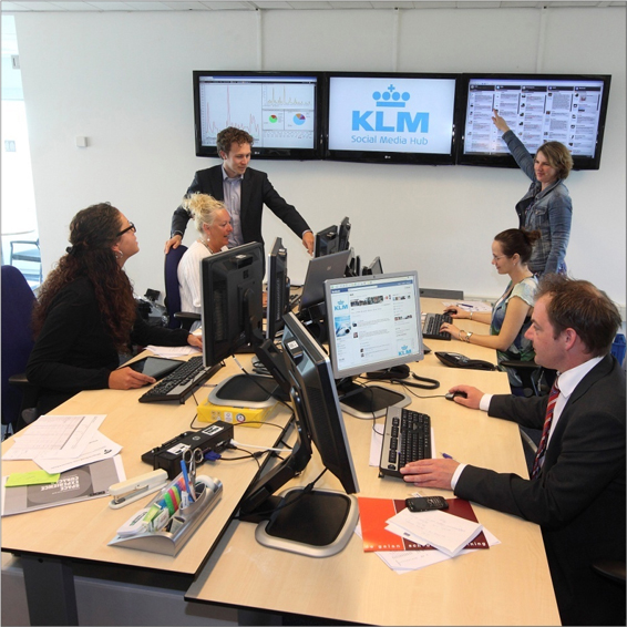 Op dit moment is KLM actief op Twitter, Facebook, Hyves, en sinds kort ook Google+. De meeste vragen komen via Twitter en Facebook. De webcare kan zelf direct rebooken, dat gaat niet meer via een andere afdeling.