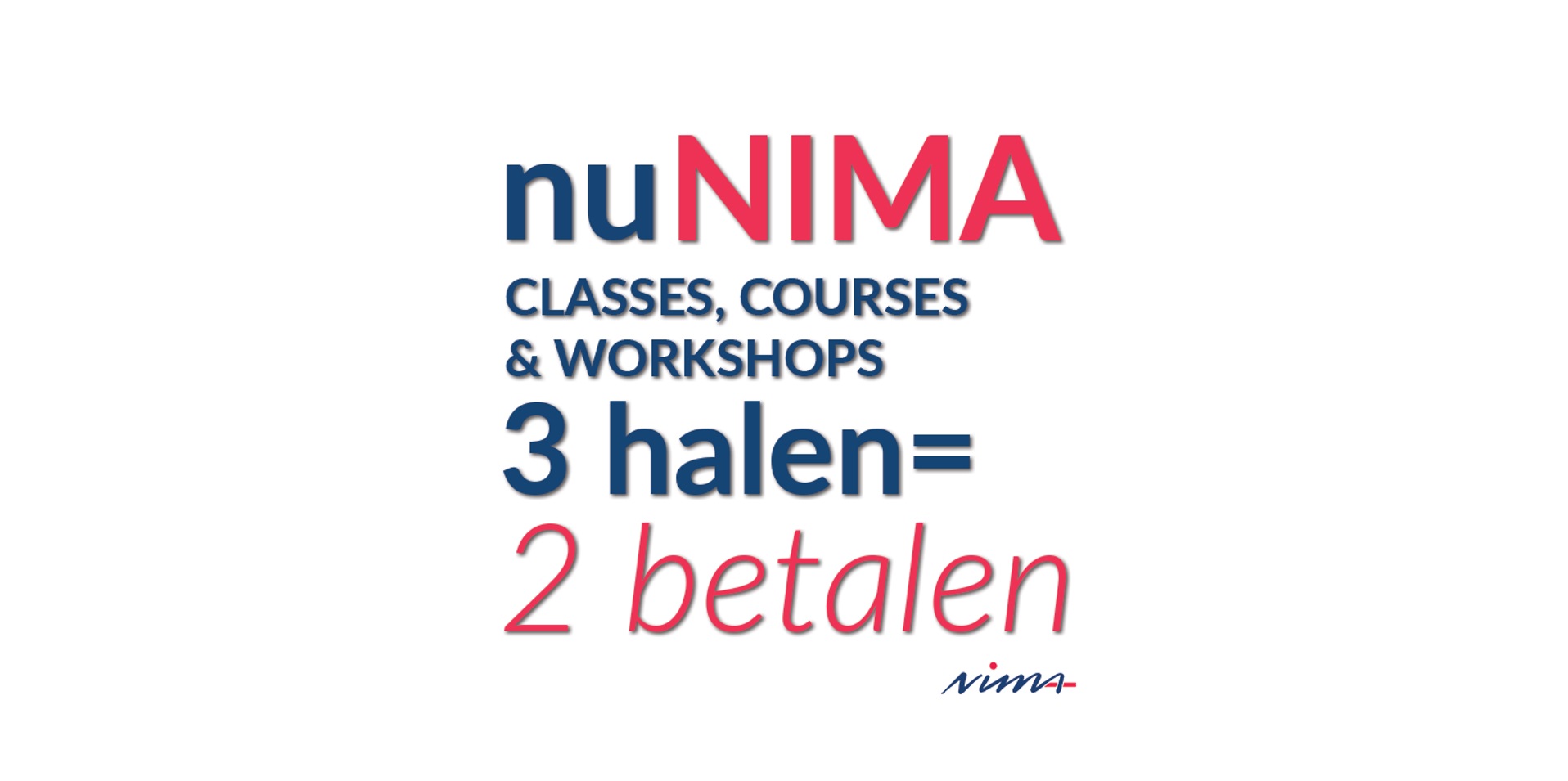 Nu NIMA Classes, Courses en Workshops 3 halen is 2 betalen #adv