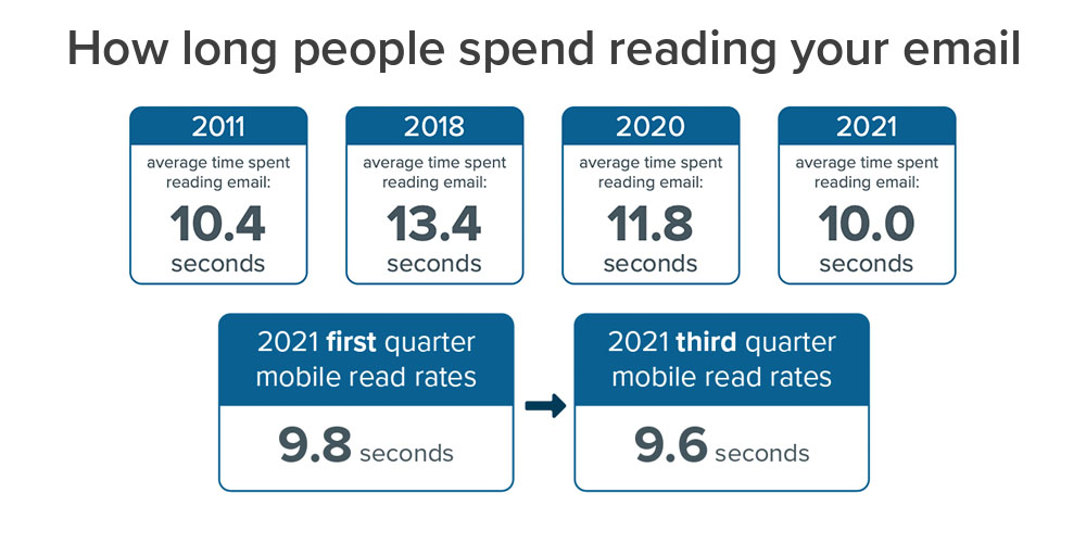 Natuurlijk. Het hoofddoel van naar een restaurant gaan is om daar te eten. Maar geen restauranteigenaar zal dat als enige doel hebben. Bij horeca hoort ook een cultuur van gastvrijheid, kwaliteit en service. Je kunt een boel kwijt in je gerechten, maar de context maakt het af. De manier waarop je bord is opgemaakt. Maar ook de tafel waar je aan zit, de inrichting, de sfeer, de achtergrondmuziek en de mensen die er werken. In een e-mail ben je in veel dingen beperkt. Zo is het lastig om daar veel informatie in kwijt te kunnen en is de gemiddelde tijd die je krijgt om een ontvanger te overtuigen iets met je e-mail te doen meestal beperkt tot enkele seconden. Dat blijkt ook uit het 2021 State of Email Engagement onderzoek door Litmus (pagina 17-18).