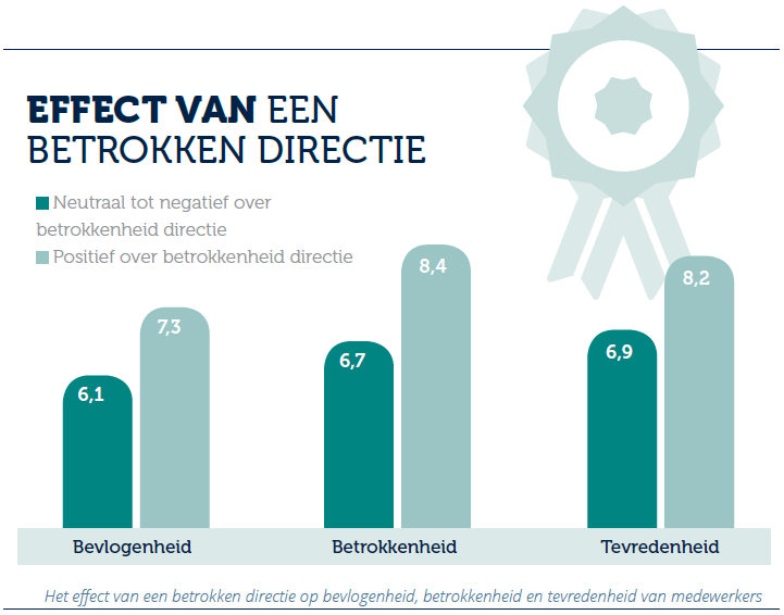 Uit ‘Het verborgen potentieel van werkend Nederland – Editie 2015’ blijkt dat een directie die betrokken is bij wat er leeft in de organisatie en op de werkvloer van grote invloed is op de bevlogenheid en betrokkenheid van medewerkers.