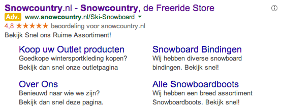 Zorg er enerzijds voor dat je de sitelinks voorziet van de belangrijkste zoekwoorden en zorg er anderzijds voor dat je de intentie van de potentiële klant achter een zoekopdracht begrijpt. Welke sitelinks zijn nu écht relevant? Het correcte gebruik van sitelinks heeft veel invloed op de kwaliteitsscore.