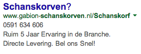 Test met verschillende USP’s in de advertentietekst en gebruik verschillende USP’s bij verschillende advertentie categorieën. Het doel van het communiceren van USP’s is immers aangeven waarin je onderscheidend bent ten opzichte van de concurrent. Dit is soms per categorie en per zoekopdracht volledig anders.