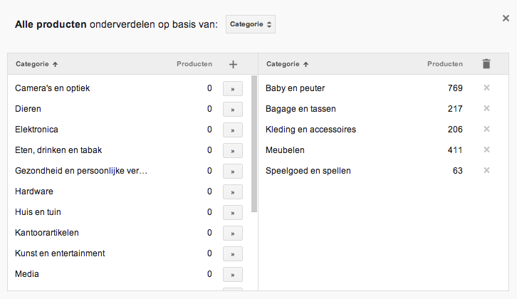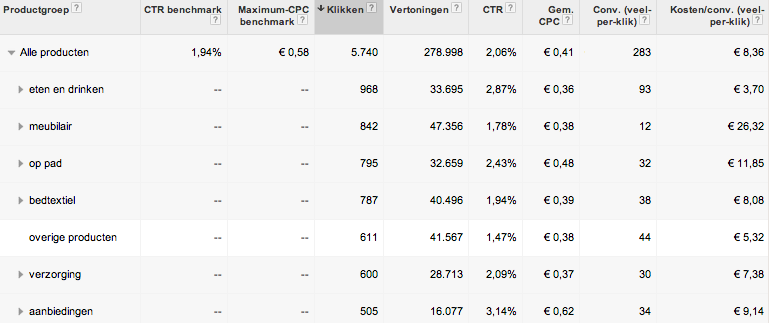 Zorg dat de productfeed goed is opgebouwd als je Google Shopping toepast. Een goede feed laat de categorieën van de webshop overeenkomen met de Google Product-categorieën. Raadpleeg de Google Taxonomy of de categorieën aansluiten bij de categorieën zoals Google die kent. Gebruik je nog geen Google Shopping? Het is een absolute aanrader om direct aan te slag te gaan met Google Shopping. Onze ervaring leert dat er bijzonder positieve resultaten te realiseren zijn door het toevoegen van Google Shopping.