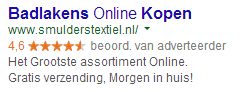 Wat is een betere USP dan een lijst met tevreden klanten? Maak gebruik van de reviewextensie in Google AdWords. Beoordelingen verhogen het doorklikpercentage op je advertentie én we meten in de praktijk een significante stijging in het conversiepercentage wanneer beoordelingen ingezet worden binnen Google AdWords.