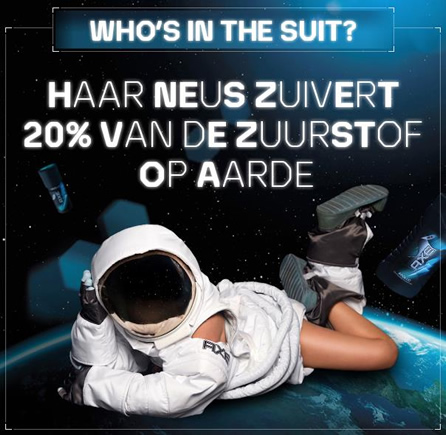 Ook promotie voor deodorant, maar dan met een heel andere insteek, is een campagne waar we zelf dit jaar bij betrokken zijn geweest: AXE Apollo. In 22 landen konden jonge mannen zich kwalificeren voor een finale waarin een echte ruimtereis gewonnen kon worden. Een van de Nederlandse missies was het raden van welke babe zich had vermomd in een astronautenpak. Een week lang was er elke avond tussen 19.30 en 20.00 uur een livechat via Twitter om de AXE babe te ondervragen en extra hints te achterhalen. Dit in samenspel met sponsored stories op voetbalzone.nl en skoften.net zorgde voor veel aandacht voor de AXE babe en natuurlijk AXE Apollo.