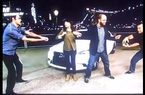 Realtime een advertentie laten ontstaan kan natuurlijk ook door mensen die gespecialiseerd zijn in improviseren: improvisatiecabaretiers. Automerk Lexus ging hiervoor een samenwerking aan met NBC Universal. Vier weken lang werd er tijdens de show Late Night geïmproviseerd komisch gedaan over de Lexus, die ook in de studio stond. Kijkers konden via social media suggesties doen. Helaas is er geen goed materiaal van het resultaat te vinden, maar denk in de richting van De Lama’s die moeten werken met suggesties uit het publiek. Zo tweet iemand “An aussie croc hunter family running behind schedule to daycare #LexusIS” en daaruit wordt live een geïmproviseerde sketch met de Lexus als prop geboren.