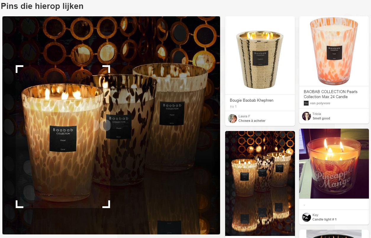 Met de ‘Pins die hierop lijken’-functie zie je welke andere pinterestgebruikers dezelfde of vergelijkbare pins op Pinterest hebben geplaatst.