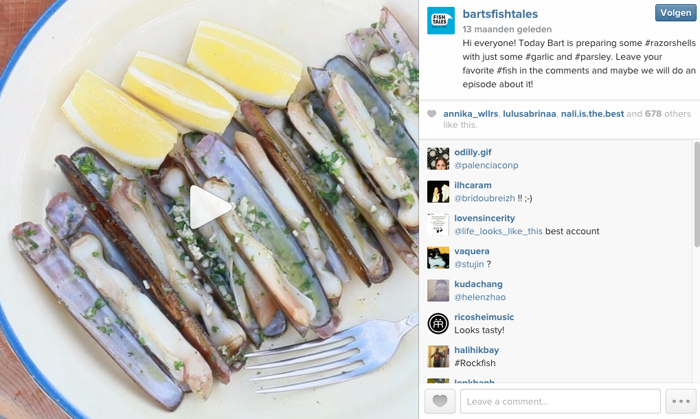 Bart van Olphen van Fishtail maakt op Instagram inspirerende korte filmpjes en kookvideo’s van 15 seconden.