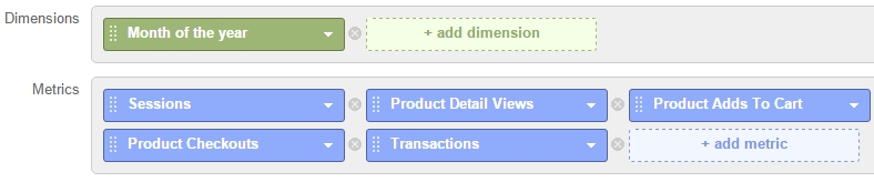 Met enhanced ecommerce krijg je de beschikking over allerlei metrieken die je vrij kunt gebruiken in maatwerkrapporten. Bovendien kun je ze daarin combineren met alle mogelijke dimensies.