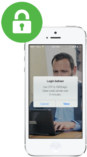 Hackers zijn steeds innovatiever als het gaat om het kraken van logingegevens. Een gebruikersnaam en wachtwoord zijn vaak niet meer voldoende om de veiligheid van je persoonlijke online omgeving te garanderen. Als extra veiligheidsmaatregel kun je gebruikmaken van een eenmalig (tijdelijk) wachtwoord, ook wel ‘two-factor authentication’ (OTP) genaamd. Na het invullen van je gebruikersnaam en wachtwoord ontvang je via sms de verificatiecode waarmee je kunt inloggen in de applicatie.
