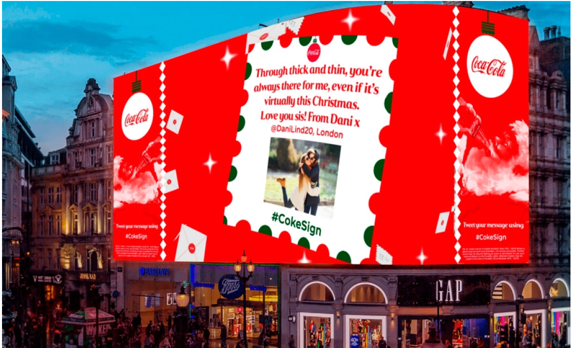 Afbeelding: Vorig jaar kerst gebruikte Coca-Cola het iconische rood om op te vallen in het aandachts geweld rondom het Londense Piccadilly Circus. Bron: Coca-Cola Company.