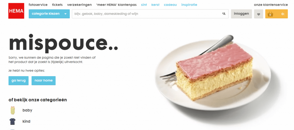Een standaard 404-pagina gaat tegen alle regels van user experience in. Op dit soort pagina’s wordt de bezoeker op een vage en technische manier verteld dat hij op de verkeerde plek is.