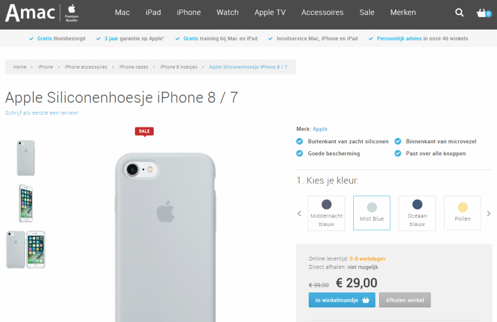 Communiceer hoe lang het nog duurt voordat het product weer op voorraad is. De meeste webshops maken inzichtelijk wanneer de voorraden weer worden aangevuld. Het vermelden van een tijd, geeft bezoekers een indicatie van wanneer ze het product kunnen verwachten. Amac doet dit door de ‘Online levertijd’ te tonen bij producten die niet direct leverbaar zijn.