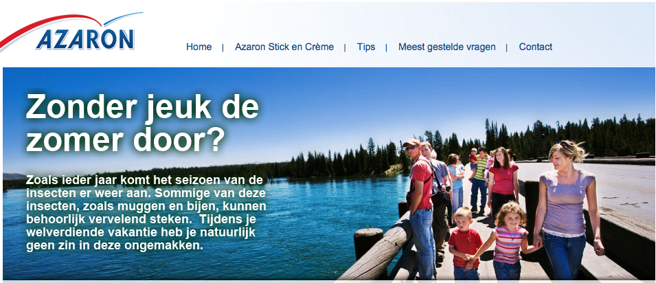 De website lijkt actueel, omdat er ingehaakt wordt op de zomer (zie afbeelding). Voor het merk is de zomer natuurlijk een goede periode voor de verkoop, omdat veel mensen buiten zijn en op vakantie gaan. De kans op insectensteken en kwallenbeten is in deze periode groter. Mede daarom geeft Azaron een aantal tips om insectenbeten te voorkomen om de consument tegemoet te komen.