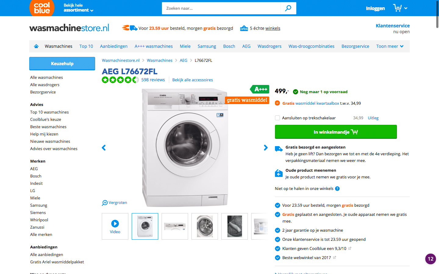 De productpagina’s van CoolBlue gebruik ik altijd als voorbeeld. Het is eigenlijk een no-brainer om informatie over onder andere retour- en verzendkosten te gebruiken, maar het gebeurt in het mkb nog erg weinig.