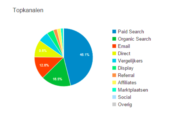 Vanuit welke kanalen komt het grootste percentage bezoekers op je website? Het maakt nogal een verschil of bezoekers de eerste keer op je website komen via organic search of dat ze een tweede keer getriggerd worden door een retargetingcampagne.