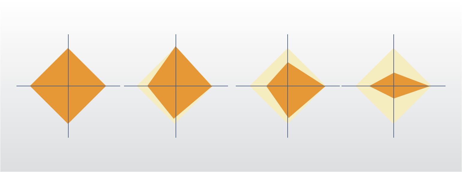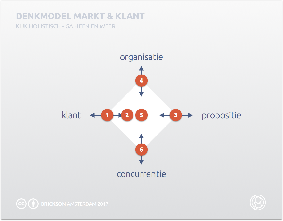 Wat een organisatie markt- en klantgericht maakt, is de balans tussen deze twee assen. Waar ik het eerder over scheefgroei had, bedoel ik de onbalans in deze ruit.