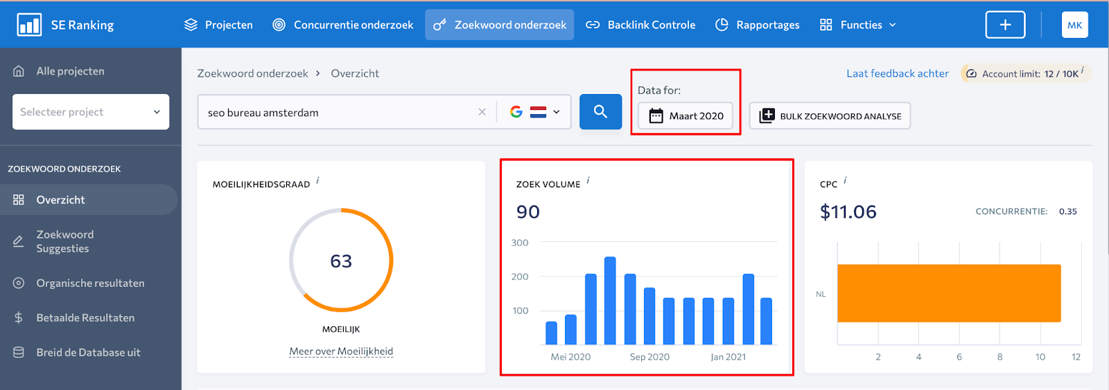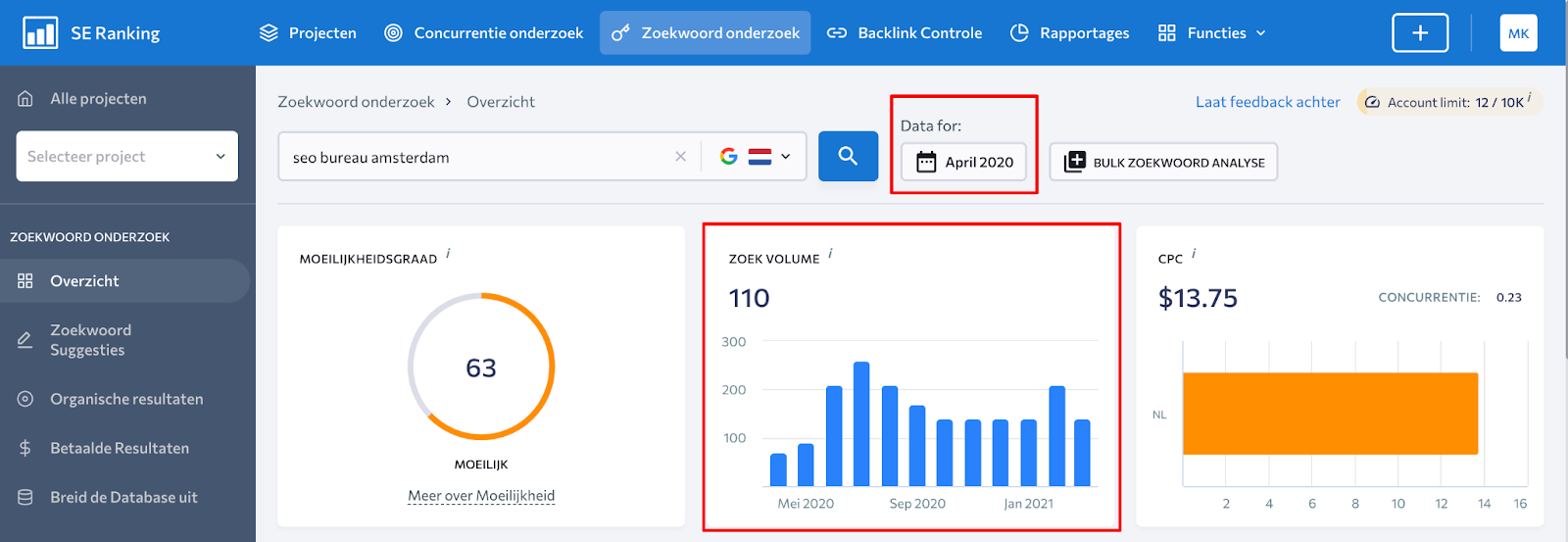 Om dit op te lossen, maken ik, andere marketingbureaus en experts gebruik van betaalde oplossingen als Competitive Research van SE Ranking. Via deze tools kun je markt- en SEO-gegevens krijgen die je de nodige historische inzichten geven. Met behulp van dergelijke tools kunnen experts een goed beeld schetsen van de manier waarop deze websites zijn gemaakt zijn, de historie van zoekvolume en rankings inzien evenals van hun concurrenten. Dit stelt je uiteindelijk in staat om een strategisch plan voor te stellen dat veel inzichtelijker en uitvoerbaarder is.