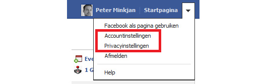 Je vind de privacyinstellingen en accountinstellingen rechts bovenin het scherm als je bent ingelogd in Facebook (op de desktop versie).