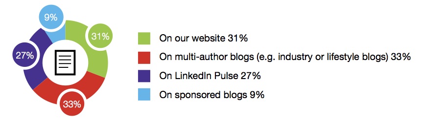 Een bedrijfsblog en multi-author blogs (zoals Marketingfacts) worden ongeveer even vaak ingezet, met LinkedIn Pulse als een goede derde.