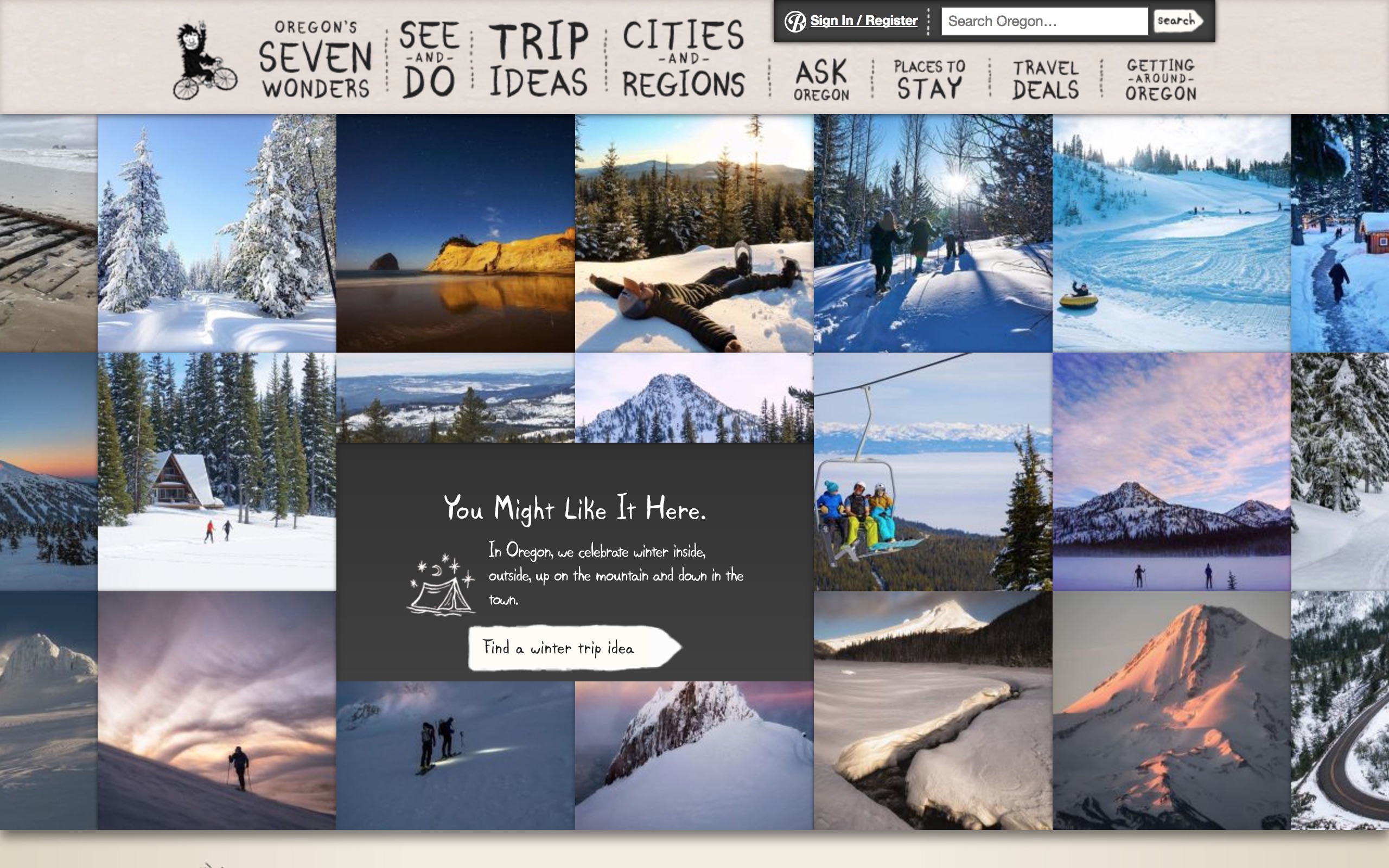 TravelOregon.com is the anchor and central hub of our consumer communications platforms. Serving close to 6 million pages viewed annually to nearly 2 million unique visitors who spend an average of approximately four minutes the site provides both inspirational and informational content to pre-qualified consumers curious about Oregon.”