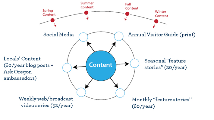 Naast het ontwikkelen van televisieformats als onderdeel van pers en pr en het bewerken van de reisbranche (travel trade) richt Travel Oregon zich op publishing & content als derde pijler.