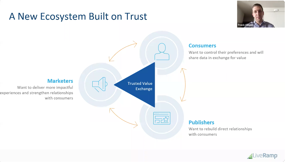 Als het aan LiveRamp ligt, ligt de toekomst van het online advertising-ecosysteem in de handen van de consument. Een omgeving waarin de internetgebruikers degenen zijn die bepalen welke data ze wel en niet delen. Zij zijn degenen die weer macht en controle moeten krijgen over hun eigen gegevens. Volgens Clinger zullen consumenten veel bereidwilliger zijn om hun data te delen als ze weten waarom ze dat doen, bijvoorbeeld om zo toegang te krijgen tot kwalitatieve content die publishers te bieden hebben.