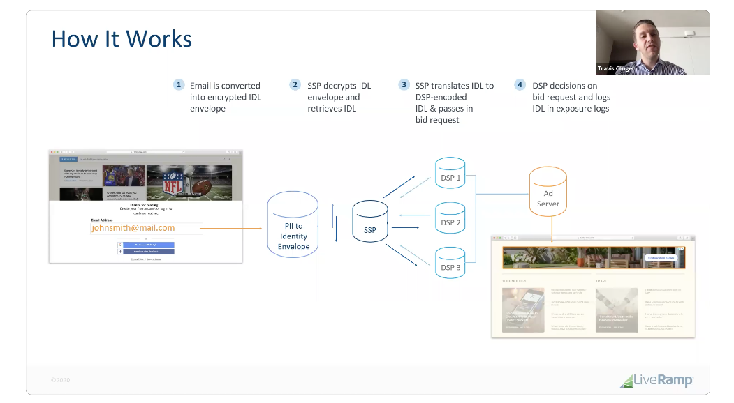 Dat logins essentieel zijn in een cookieloze wereld, kan Travis Clinger, Senior Vice President, Addressability and Ecosystem bij LiveRamp, een van de grootste marketing-, data- en technologiebedrijven in de wereld, alleen maar bevestigen. Inloggen is namelijk de basis van hun Data Connectivity Platform (DCP) dat inmiddels wereldwijd door meer dan 40 Demand Side Platforms (DSP’s) en 15 supply-side platform/sell-side platform (SSP’s) wordt gebruikt.