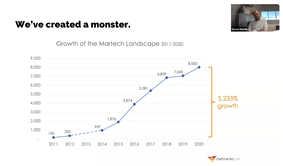 Dat de markt verantwoordelijk is voor het aankomende cookieloze tijdperk bevestigt ook Mandic luid en duidelijk. Volgens hem is er een ecosysteem gecreëerd waarin, zoals je in onderstaande afbeelding goed kunt zien, in een relatief korte periode enorm veel spelers bij zijn gekomen.